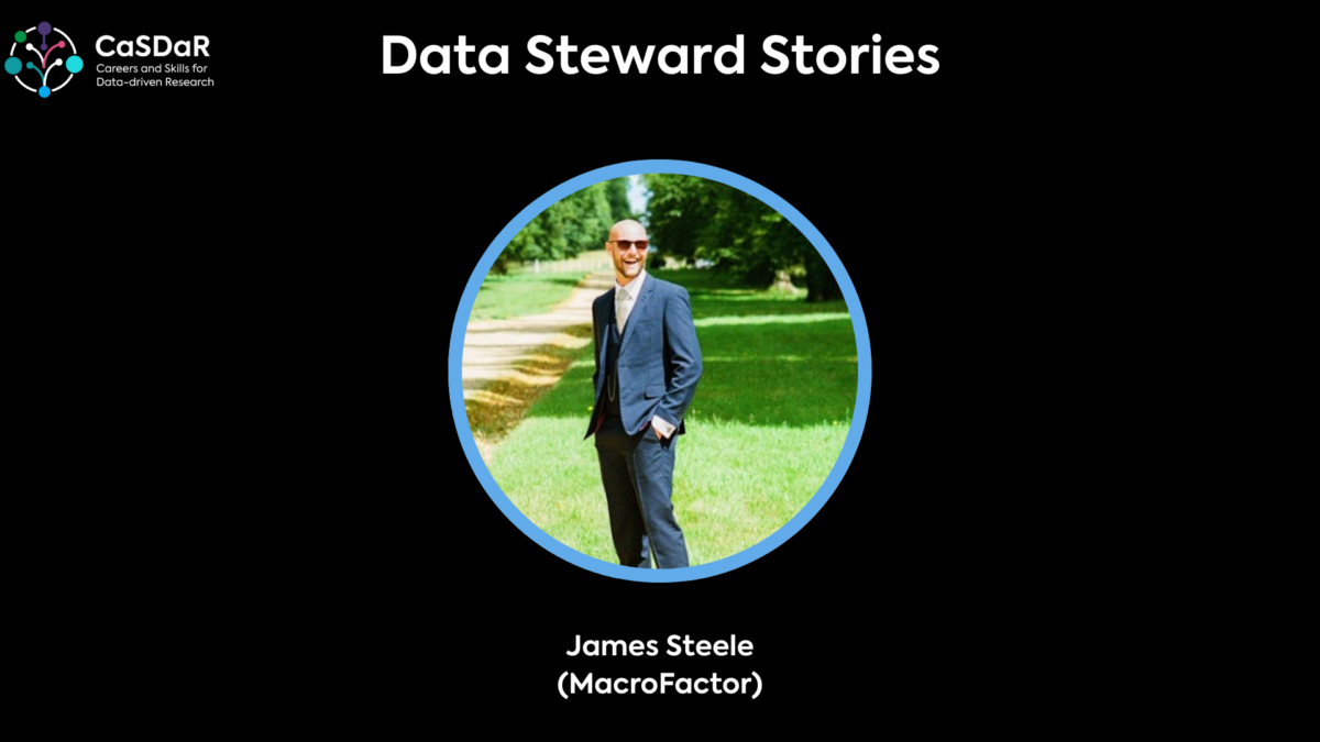 CaSDaR is committed to promoting recognition for individuals who fulfil Data Stewardship activities within their role, often going above and beyond in this capacity, and to providing an evidence base of what Data Stewardship look like in the UK research ecosystem. Our Data Steward Stories sessions provide an opportunity to share these with the community and empower individuals to seek recognition for their work. In this Data Stewards Stories session, Dr James Steele provided an overview of his career in supporting data stewardship from a holistic perspective, from navigating research dissemination to the appropriate use of statistics. James also shared insights into how his commitment to evidence-based decisions and research integrity has shaped his career trajectory.